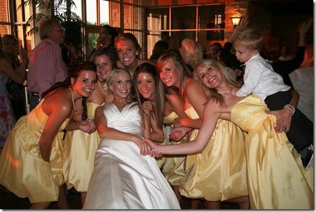 My little man was so sweet…Shannon kept him during the wedding and he was very concerned about Matt and I! :) He could see us but didn’t know why he couldn’t “hold” us! As soon as I got to him after the wedding, he said, “Hold you NOW, Momma!” … He warmed up a little to the dance floor…but wasn't the ham that his Daddy tends to be. … At least he got to lead the “train” for Come on Ride That Train…
