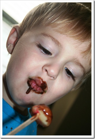 After a GOOD nap, Q woke up to a fun snack that I prepared while he was sleeping. This is another idea I got from Parents magazine. And, Quinn ATE. IT. UP. Literally! He ate about 5 of them!!! … And, Mommy might have eaten a few too! :) …