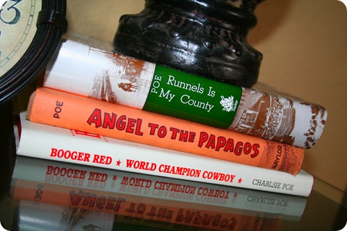 The little table (that actually used to be our bedside tables in our bedroom), holds some precious pictures and Matt’s great-grandma Charlsie’s three published books! I love that we have a copy of each of them to proudly display in our home!