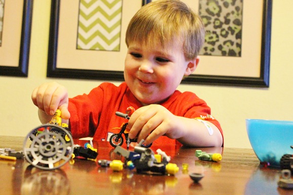 He plays with big boy Legos.